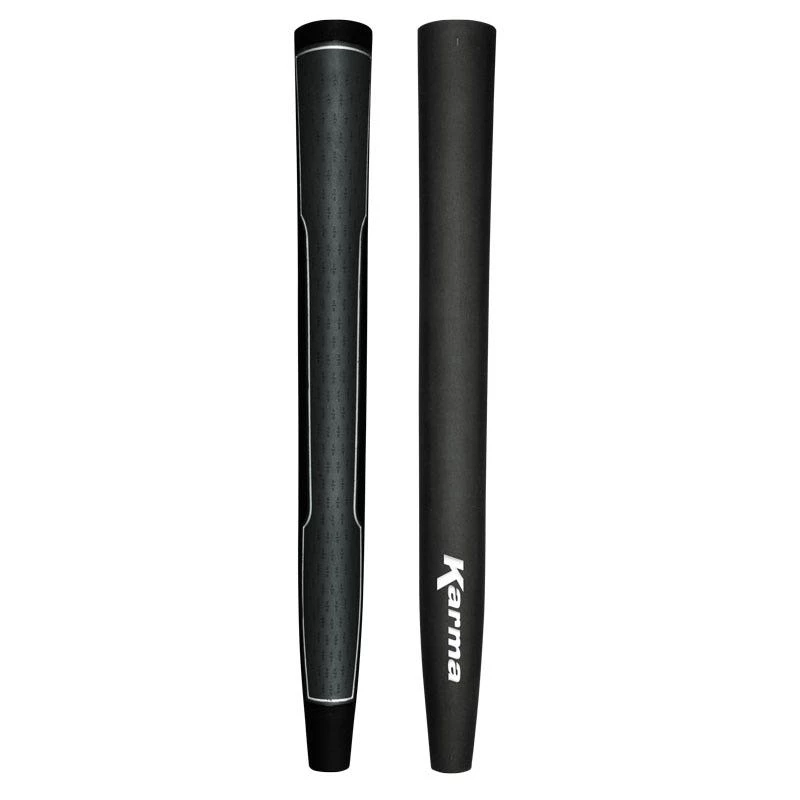 The Karma Jumbo Putter Grips feature a comfortable pistol shape for those with larger hands. A multi-textured construction starts out with smooth and tacky top and sides and rounded out with a soft, yet high traction bottom outlined in white.