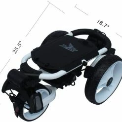 Light and smooth to push on the golf course, this push cart features a unique gliding system design that will simply help you transport your golf bag. Bag holding rack supports most golf bags of different sizes and has an adjustable bag strap to secure the golf bag.